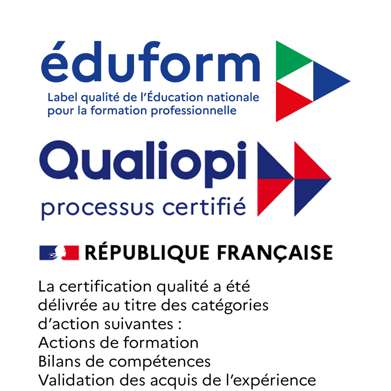 Le GRETA Portes normandes est labellisé Eduform et certifié Qualiopi pour les actions de formation, les bilans de compétences et les actions permettant la validation des acquis de l’expérience.